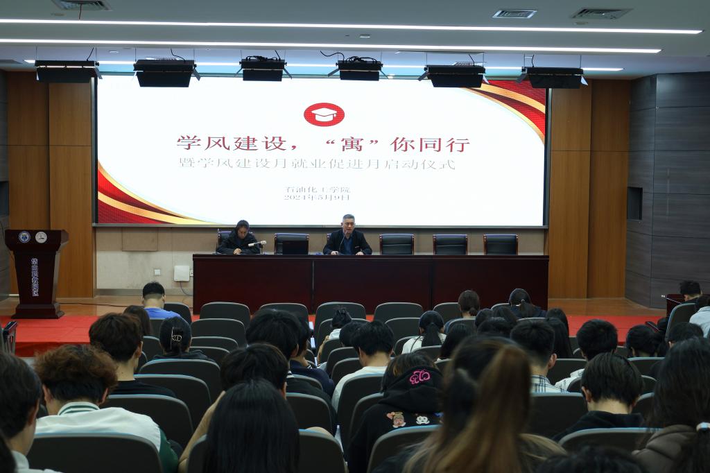 为深入学习贯彻党的二十大精神,为充分发挥“一站式”学生社区的育人作用,进一步抓学风促就业,提升学院整体教育教学水平,营造积极向上的学习氛围,5月9日,石油化工学院举行了“学风建设,‘寓’你同行”暨学风建设月就业促进月启动仪式,学院党总支书记童华年、分团委书记孙丹晔、全体辅导员及学生社区楼长、层长、寝室长参加。