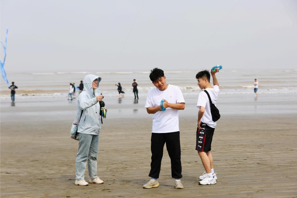 在手绘风筝比赛中,每个学院的选手们迸发奇思妙想,亲手绘制的风筝展现了高超的技艺与无限的创意。同学们各展所长,形态各异的风筝在春风的吹拂下翩翩起舞,直冲云霄。在碧海蓝天与金色沙滩的交相辉映下,纸鸢纷飞,形成了一幅幅绚丽多彩的画卷,