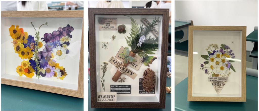 在春日来信活动中,同学们积极参与,通过各类植物、干花、干果开展创作,再辅以文字、绘画及其他创意形式,根据不同的心境制作属于自己的DIY干花作品,表达自己的情感寄托。