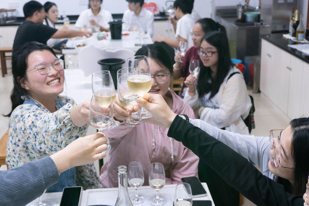 起泡酒作为最活泼百搭的葡萄酒往往能在这炎炎夏日给人带来一丝沁人心脾的美好。6月13日,海洋旅游学院师生参加了“龙行高校”2024中国葡萄酒公开课第六课———“灵动气泡 香润韶华”。