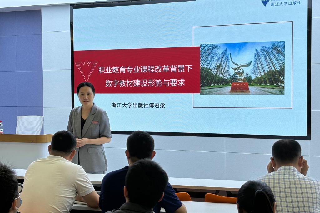 为贯彻落实《关于深化现代职业教育体系建设的改革意见》、深入学习职业教育五金建设内涵,在职业教育专业课程改革背景下做好数字教材的建设工作,628日下午,教务处特别邀请浙江大学出版社的资深编辑傅宏梁老师在海德楼4117智慧教室举办了《职业教育专业课程改革背景下数字教材建设形势与要求》专题讲座。各教学单位副院长、近三年立项的自编教材主编、有教材编写意向的教师共计三十余人参加了本次讲座,讲座由教务处处长郑燕华主持。