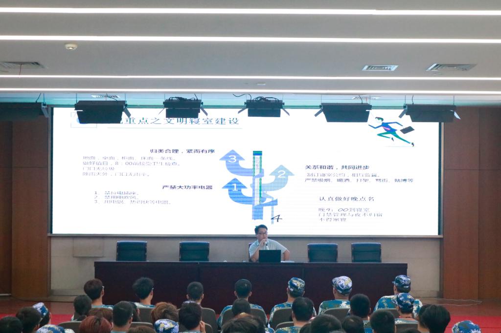 接着他从“大学生是什么”“大学是什么”“怎么做合格大学生”三个方面向新生们详细解读了与大学生息息相关的各项规章制度,从校园文化生活、社团活动、心理健康、安全教育等多个角度,为新生们全面介绍了大学生活的丰富多彩。同时用真实案例讲述了如何处理人际关系,以及如何维护自身的身心健康等内容,使新生们对如何在大学中获得全面发展有了清晰的认识。