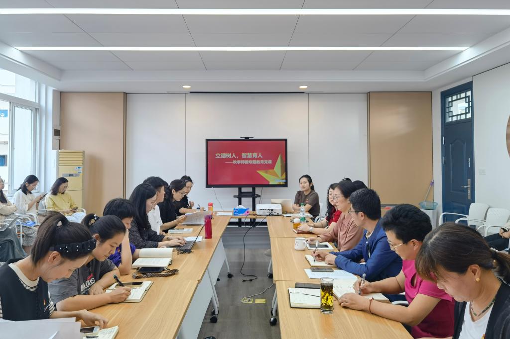 张蕊老师从学习习近平总书记在全国教育大会上的重要讲话精神、解析教育家精神内涵、弘扬教育家精神路径、分享精品在线开放课程建设实践经验四个方面展开,以旁征博引、深入浅出的方式,阐释了对教育家精神的理解与践行,深刻认识师德建设的重要性,落实立德树人根本任务,为老师们呈现了一堂生动而深刻的党课。