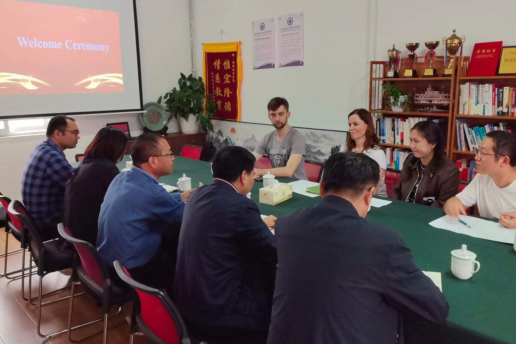 11月4日下午,学校为来校授课的乌克兰马卡洛夫国立造船大学的2名教师举行欢迎仪式,国际教育学院院长吴旭光、海洋装备工程学院党总支书记罗秀峰,乌克兰2名外教Tanya和Eugene以及学院的相关人员参加会议。
