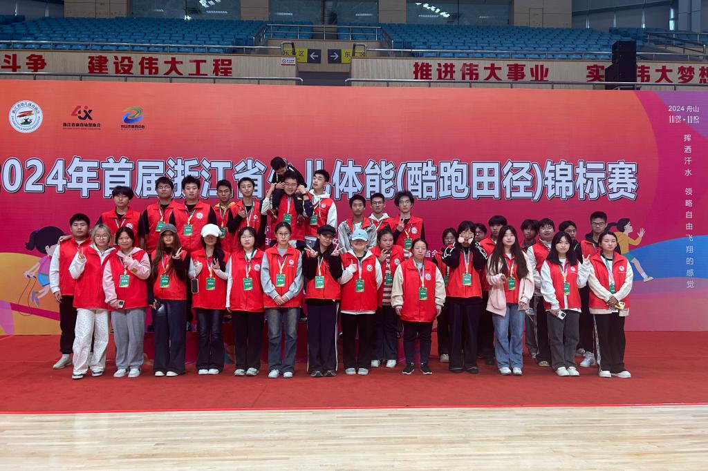 11月9日-10日,2024年首届浙江省少儿体能(酷跑田径)锦标赛在市体育馆火热进行,我校32名“海小豚”志愿者亮相,为赛事添彩。