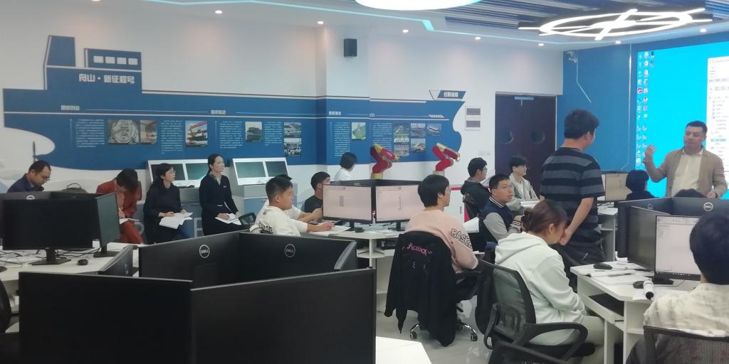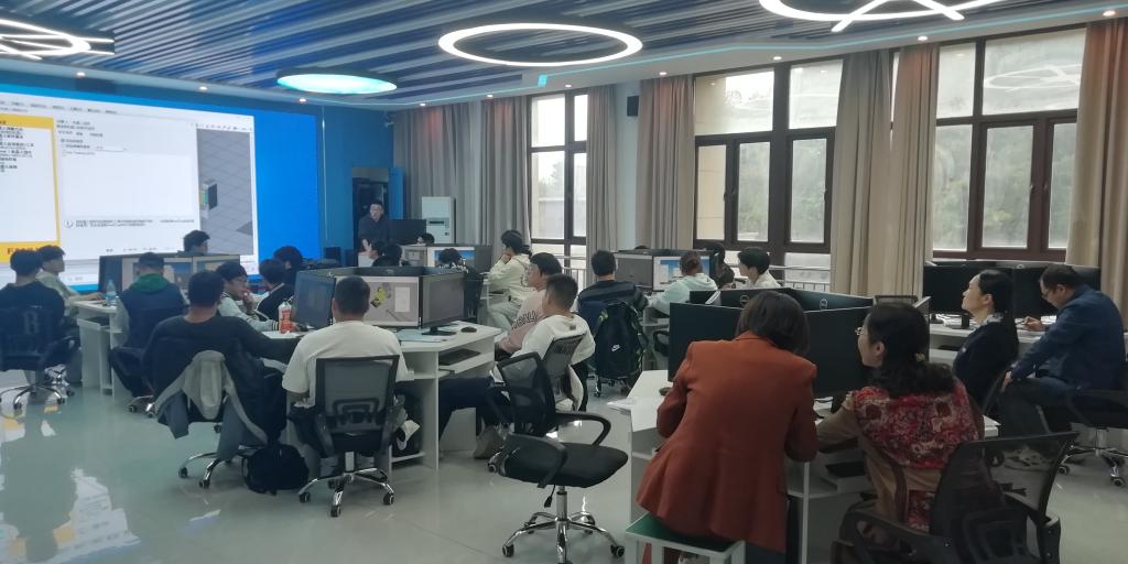 在听取2024级工业机器人技术3班郑哲伟老师的《工业机器人的三维建模》,2024级智能控制技术3班蔡江涛老师的《智能传感技术及应用》以及2024级工业机器人技术3班张杰老师的《工业机器人应用编程》后,郑燕华一行表示,任课教师都非常认真。