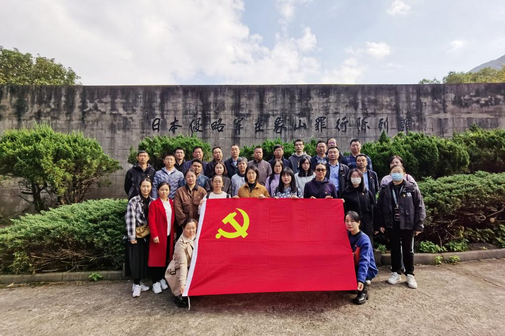 活动中,大家来到象山茅洋爱国主义教育基地——日本侵略军象山罪行陈列馆,馆内陈列的每一件展品如同一部沉重的历史书卷,诉说着那段屈辱而悲惨的过去。追思历史伤痕,悼念遇难同胞,感悟这段血染奋斗的革命岁月。通过观看珍贵历史图片、视频资料以及实物展品,党员干部职工们将抗战英雄艰苦奋斗、坚韧不拔的拼搏精神铭记在心,进一步弘扬革命传统,践行党员的初心和使命。