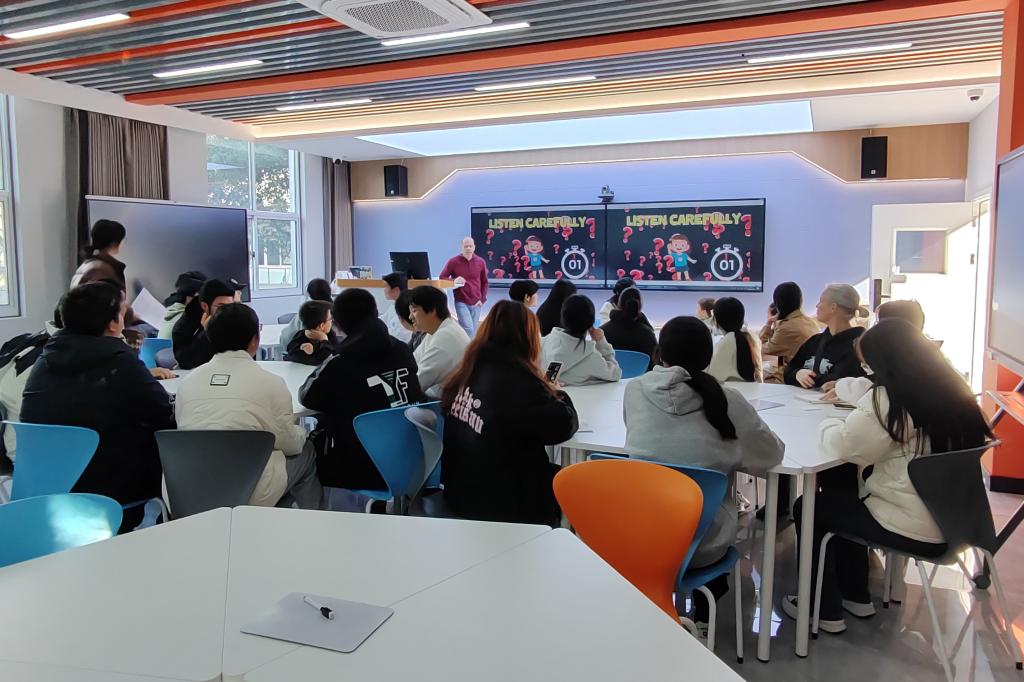 11月27日,第四期英语角活动在海德楼举行,本期主题为“animals(动物)”。美国外教Benjamin及全校30多名英语爱好者参加。