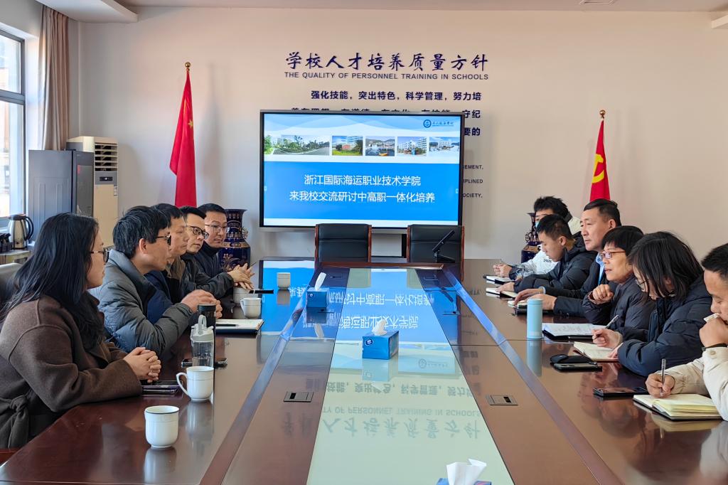 为深化中高职一体化培养,提升在舟中高职教育的融合发展,1月16日,现代港口贸易学院院长王贵斌率领跨境电商专业教师团队及舟山市跨境电商产业园的企业代表共6人,一同前往舟山职业技术学校与舟山航海学校参观走访,并就中高职一体化办学模式展开了深入调研与交流。