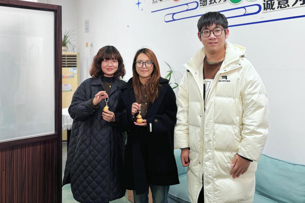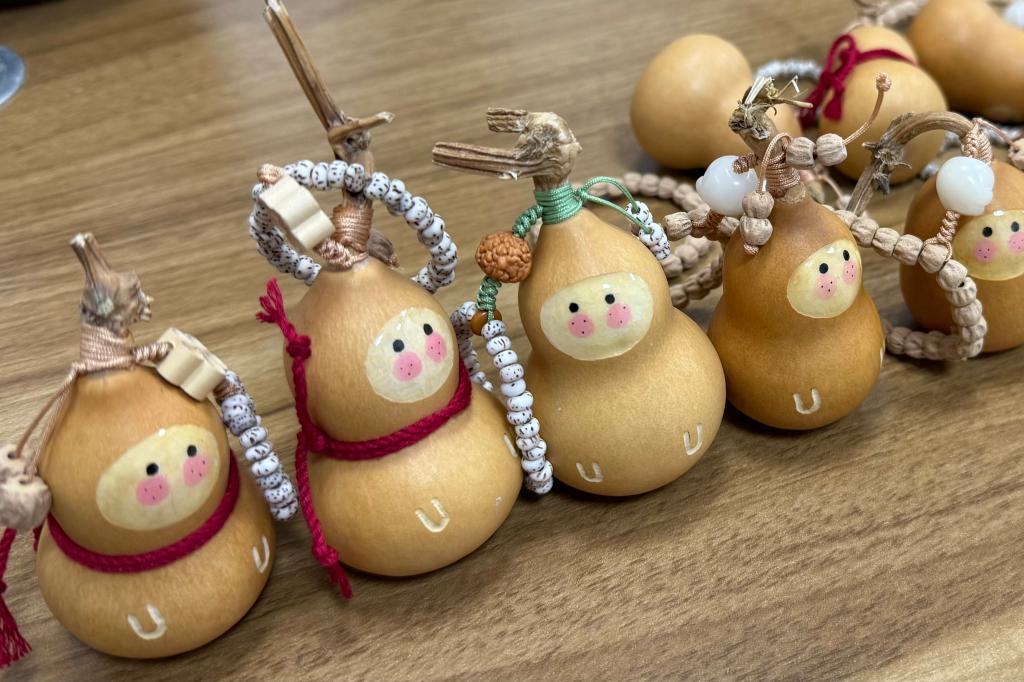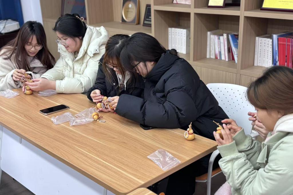 活动现场,同学们热情高涨,他们将小配饰精心串联,一起缠在小葫芦上。经过一番努力,一个个精美的葫芦挂件逐渐成型。葫芦谐音“福禄”,寓意着幸福、吉祥,饱含着学生们对女老师们最真挚的祝福。