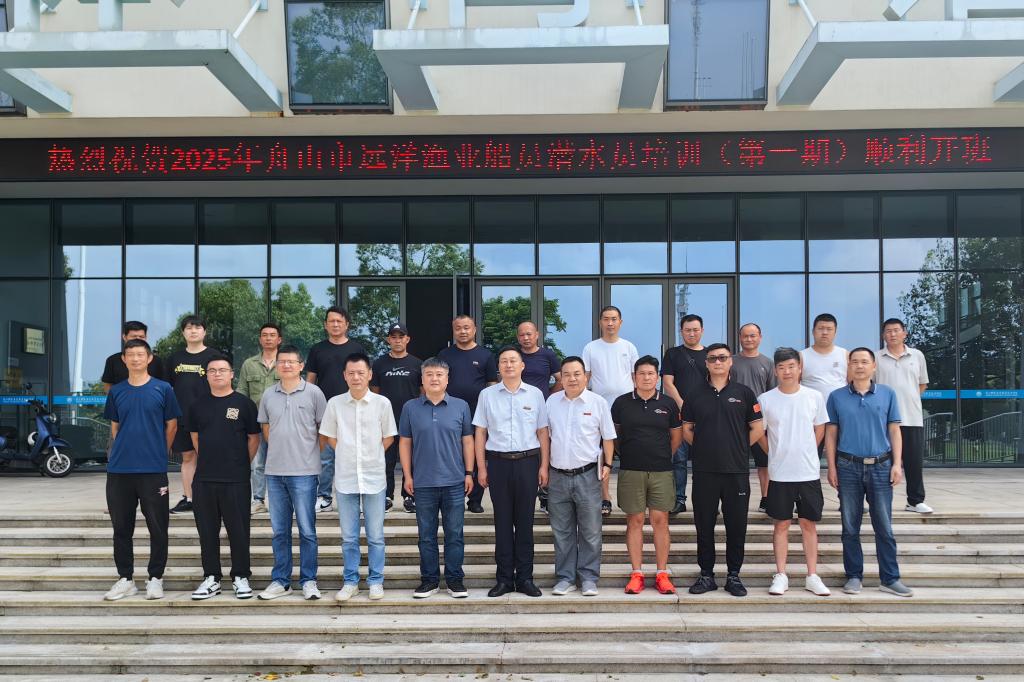 7月10日上午,舟山市远洋渔业潜水员首期培训班开班仪式在我校体育馆二楼会议室举行。市海洋渔业经济发展局远洋渔业处处长张鸿宾、浙江省渔业互保舟山办事处主任董海斌等领导出席会议,我校党委委员、副校长夏志刚,文化体育部部长王智明及相关人员和来自全市各远洋渔业公司的12位学员参加了开班仪式,会议由王智明主持。
