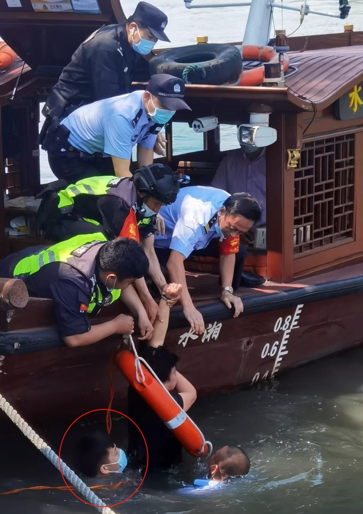 期间,陈瀚涛奋力拖拽了10多分钟,仍然无法将落水者彻底救出,期间围观群众虽然送来绳索、救生圈等物品,但是单手拉拽的他,已近力竭,幸好此时另一位船老大及时帮助,众人合力将女子救上船。