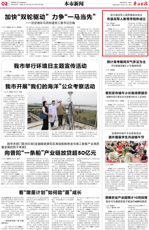 《舟山日报》:助力退役军人高质量就业创业 市退役军人教育学院昨成立