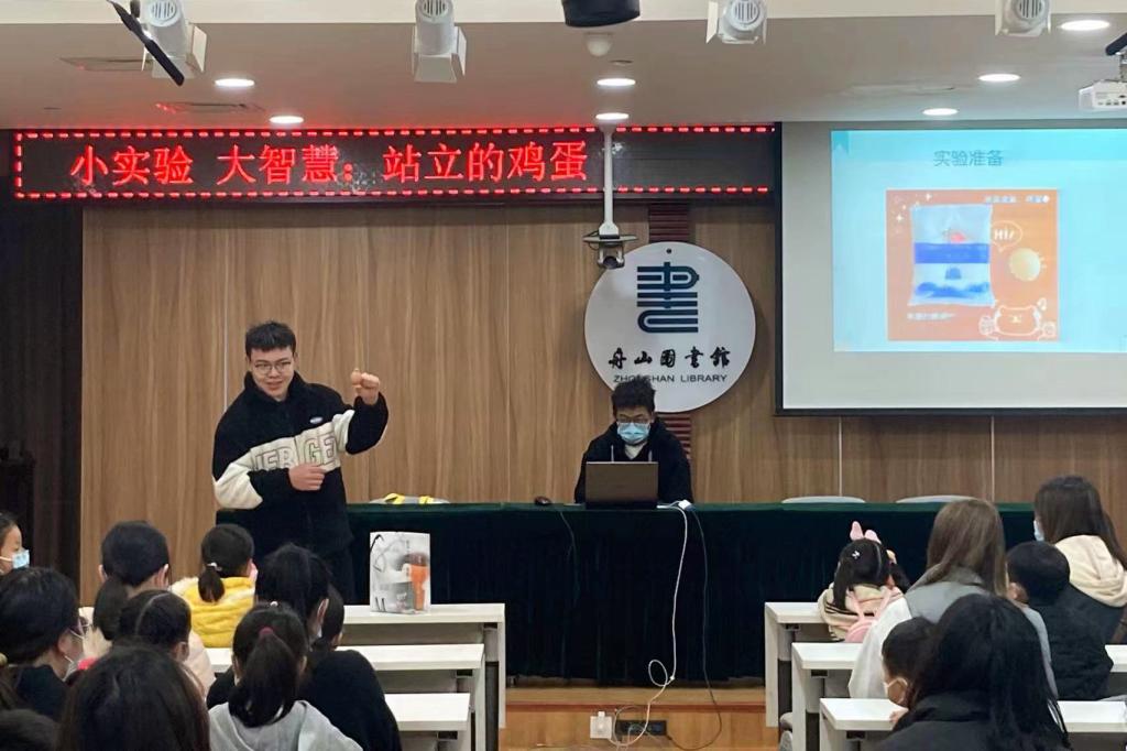 3月25日,海洋装备工程学院“同舟基金”志愿服务团队在舟山市图书馆开展“小实验,大智慧”科普小讲堂活动,志愿者将生活中的小知识转化为有趣的实验,与学龄前的小朋友们共同分享科学的乐趣,寓教于乐,帮助小朋友更好了解科学知识。