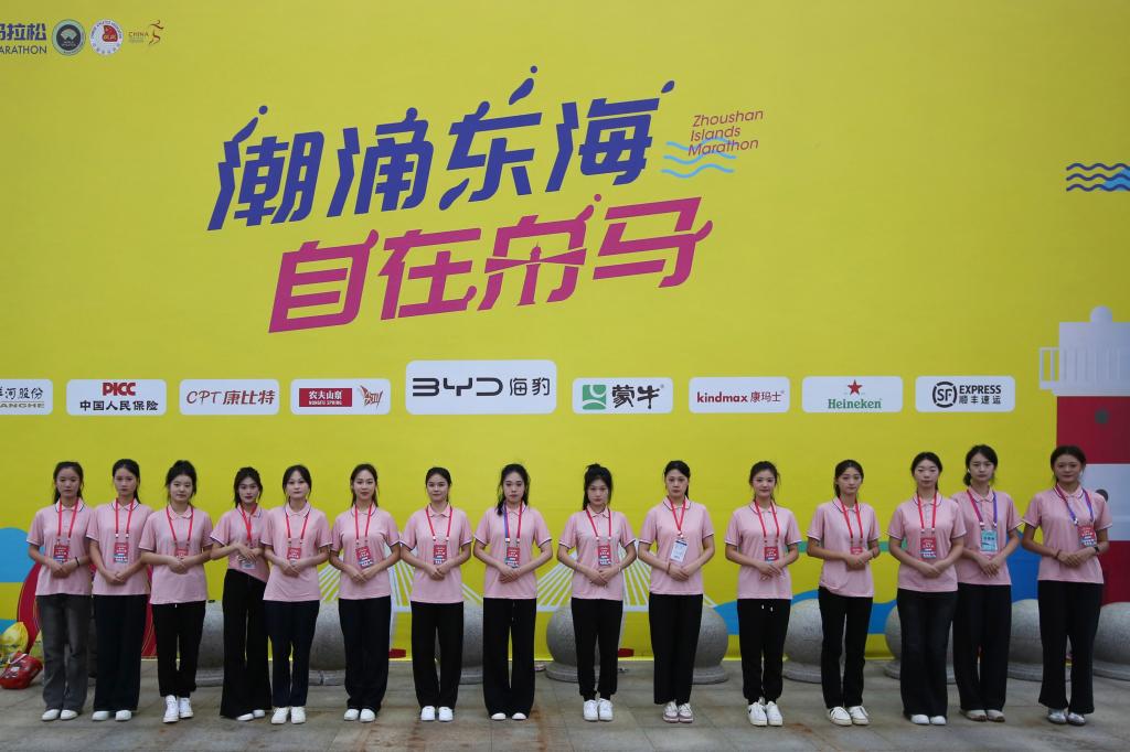 海洋旅游学院礼仪志愿者服务团队此次助阵马拉松,完美展现了学院学子的风采,也为赛事的成功举办贡献了青春力量。(海洋旅游学院)
