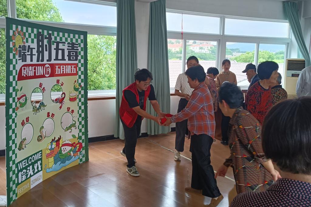 为弘扬中华民族优秀传统文化,增强校地共建组织凝聚力,营造和谐温馨的节日氛围,5月28日下午,航海工程学院学生志愿者服务团队赴翁洲社区,与社区工作者、居民代表共40余人携手开展粽香传情 艾意暖心端午主题文化活动。活动以传统民俗体验为核心,融合爱心互动与文化传承,在一针一线、一投一掷间,让千年端午习俗在现代社区焕发新生机。