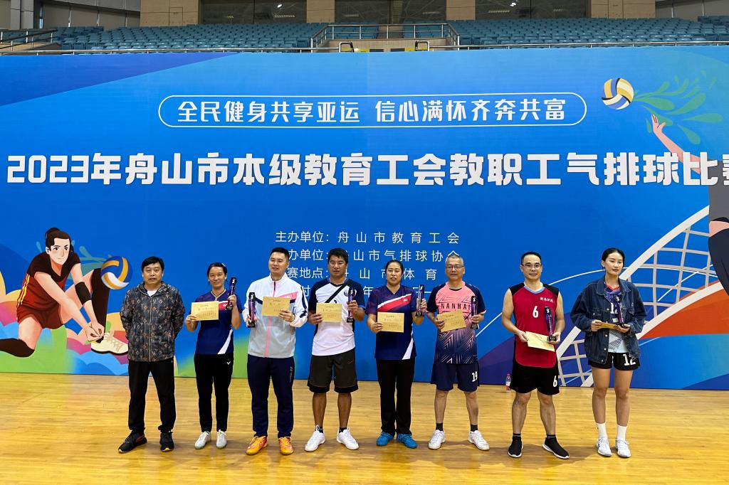10月28日-29日,我校教职工气排球队在“全民健身共享亚运 信心满怀齐奔共富”2023年市本级教职工气排球比赛中,一路过关斩将挺进决赛,荣获高中高职组第二名!校党委委员、工会主席刘相及教师代表到场为我校气排球队呐喊助威。