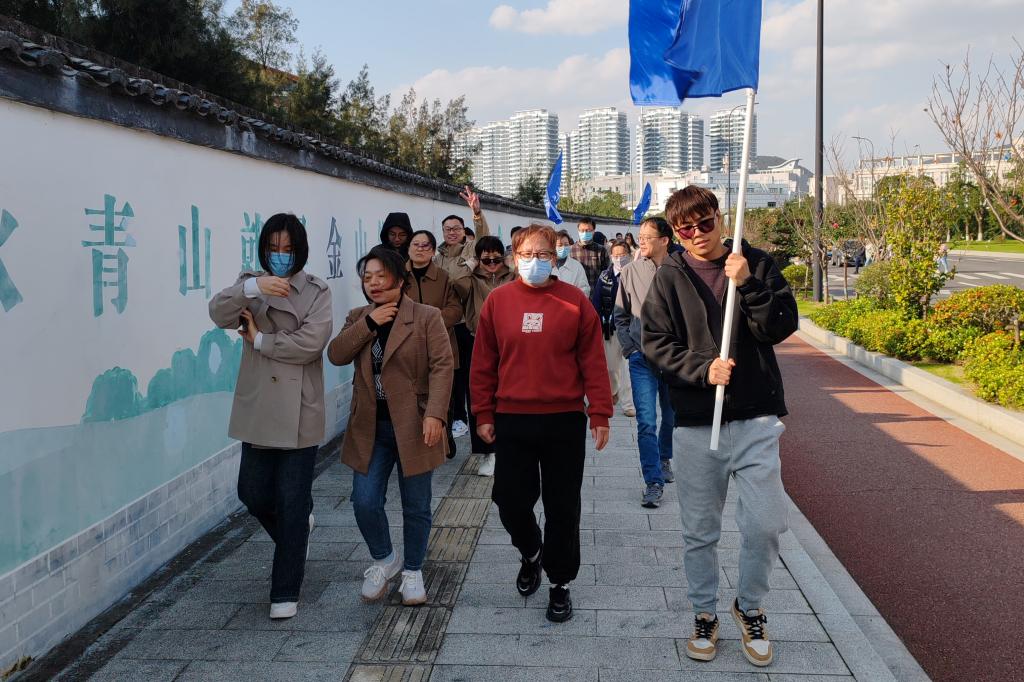 下午14:00,在进行安全教育后,教职工们从学校田径场集中出发,沿滨海大道至千岛路路口北纬30度界碑处折返。活动中,以各二级分工会为方队,在会旗的带领下,教职工们沿着沿滨海大道,意气风发,结伴而行;大家一路呼吸着新鲜空气,一边欣赏着新城海边美景,享受着健步走带来的乐趣,享受着运动的魅力;欢快的笑语、整齐的步伐、畅快的汗水,展现出团结奋进、拼搏向上的精气神,形成冬日里一道亮丽的风景线。