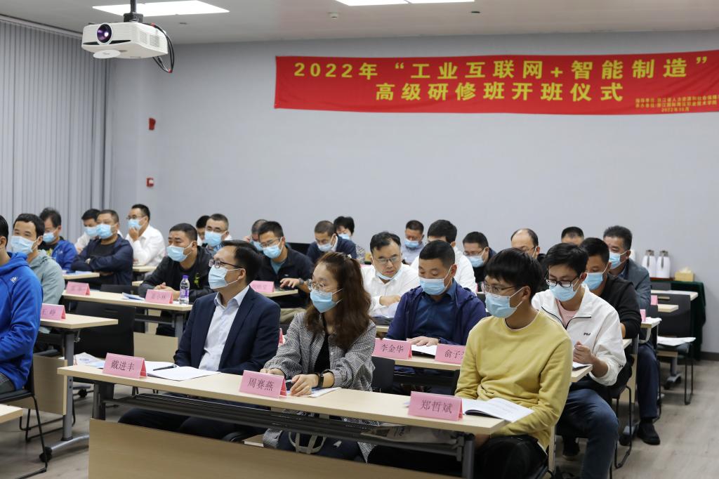 为推进数字经济和实体经济融合发展,加快新旧发展动能接续转换,进一步提高企业智能制造水平、促进企业传统产业数字转化,受浙江省人力资源和社会保障厅委托,我校联合舟山交通投资集团有限公司、舟山市高新区商会于10月8日-10日举办了“工业互联网+智能制造”高级研修班,40余名来自省内的相关企业负责人、管理骨干参加培训。校党委委员、副校长夏志刚,港口管理学院院长王贵斌出席了8日上午的开班仪式。